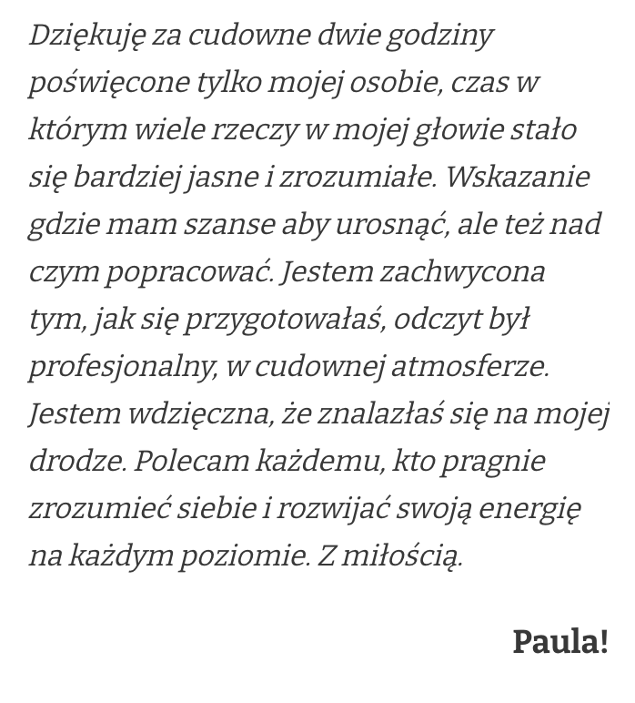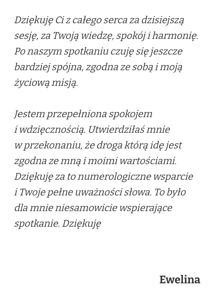 i wdzięcznością. Utwierdziłaś mnie w przekonaniu, że droga którą idę jest zgodna ze mną i moimi wartościami. Dziękuję za to numerologiczne wsparcie
